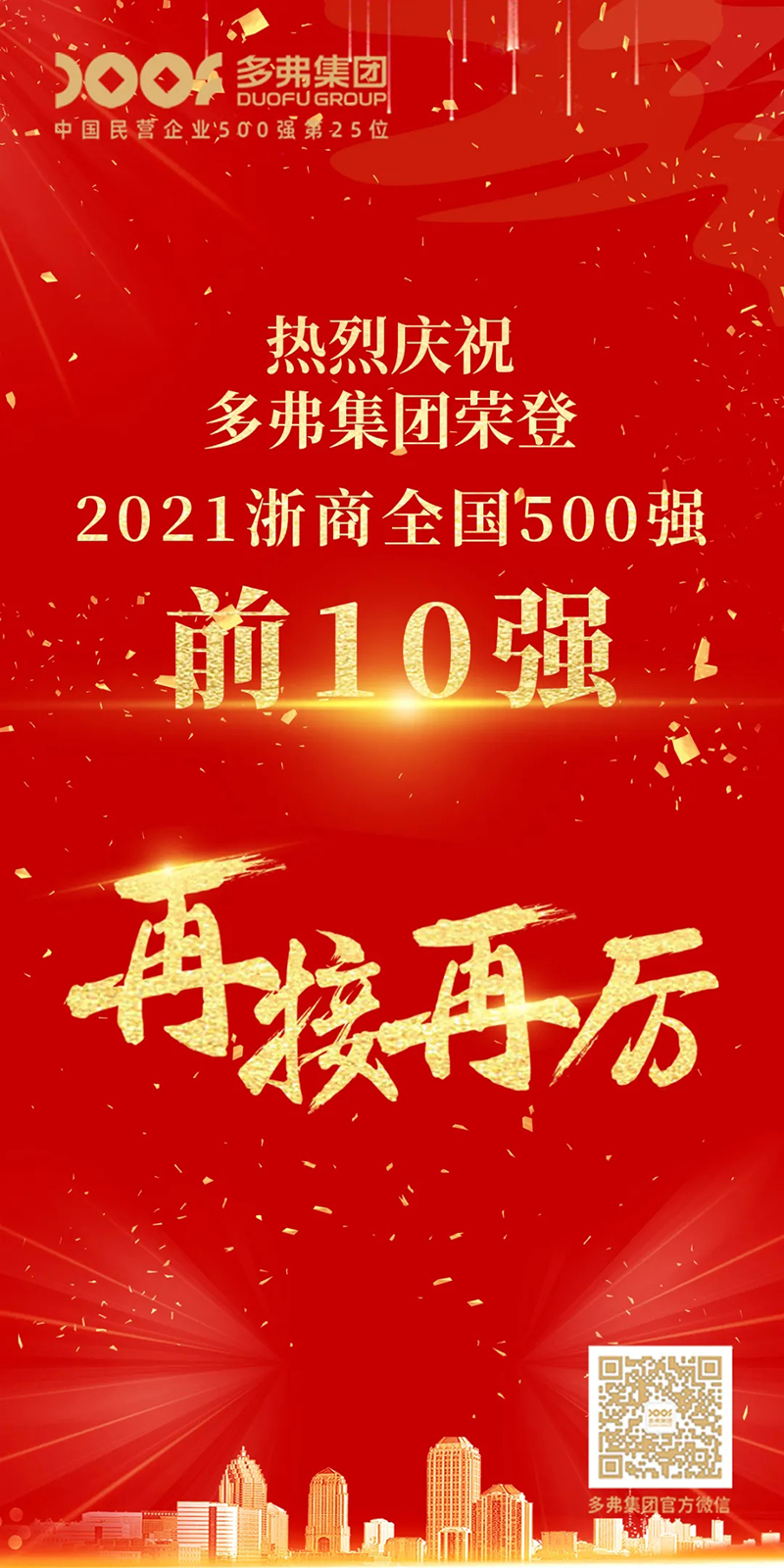 《浙商》雜志2021年8月最新一期雜志正式發(fā)布“2021浙商全國(guó)500強(qiáng)”榜單,多弗國(guó)際控股集團(tuán)進(jìn)入前十強(qiáng)。