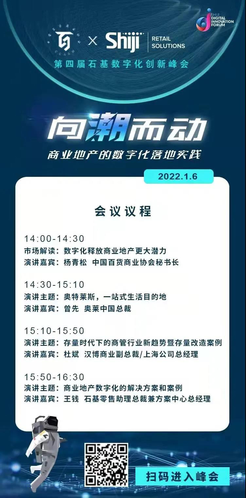 2022年1月6日,由中國(guó)百貨商業(yè)協(xié)會(huì)和石基零售共同主辦的 “商業(yè)地產(chǎn)數(shù)字化落地實(shí)踐”線(xiàn)上研討會(huì)正式召開(kāi),奧特萊斯(中國(guó))有限公司總裁受邀參加,并進(jìn)行了有關(guān)《奧特萊斯,一站式生活目的地》的主題演講。
