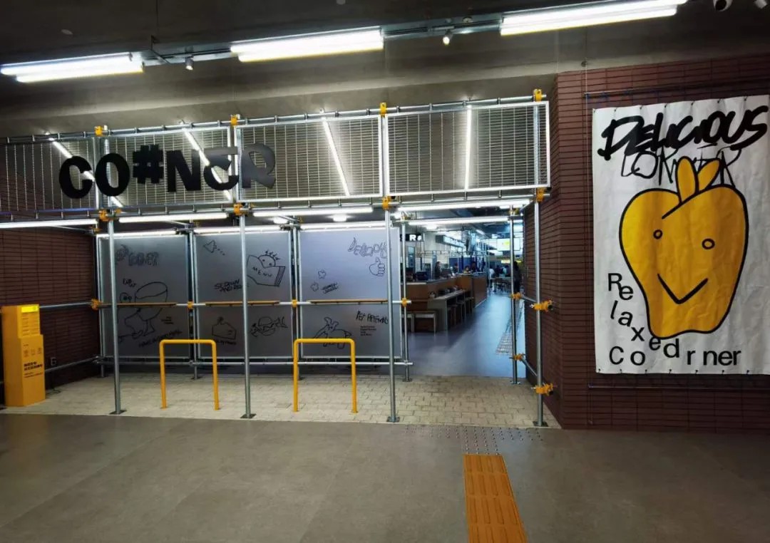 今年五一期間項(xiàng)目內(nèi)部又亮相一新空間:定位全新創(chuàng)意餐飲空間的CO#NER。水泥工業(yè)風(fēng)與明亮的電杠搭配,營造出極具趣味的沖撞對比感。項(xiàng)目以美食社交為理念,營造出全時(shí)段青年食堂與斜杠據(jù)點(diǎn)。除了引入時(shí)下年輕人喜愛的品牌外,還攜手了諸多本地知名品牌定制打造專屬的品牌門店,如與雷門拉面跨界打造的全新潮流燒肉拉面「黑銀拉面」成都首店等。