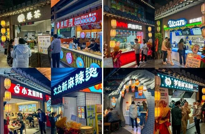 與復古宋朝市井生活場景形成有趣反差的是,這里大膽引入眾多特色創(chuàng)新品牌,豐富了商業(yè)項目的就餐選擇和體驗,包括湖南擂辣椒飯【擂飯】、【小木屋拌飯】、【港町灣關(guān)東煮】、河南本土gelato冰激凌【極拉圖】、新式飲品【椰不二】、回轉(zhuǎn)小火鍋品牌【串士多】、成都知名小吃【芙蓉巷】、【大吉利潮汕牛肉火鍋】……一舉成為鄭州頂流覓食、社交地。