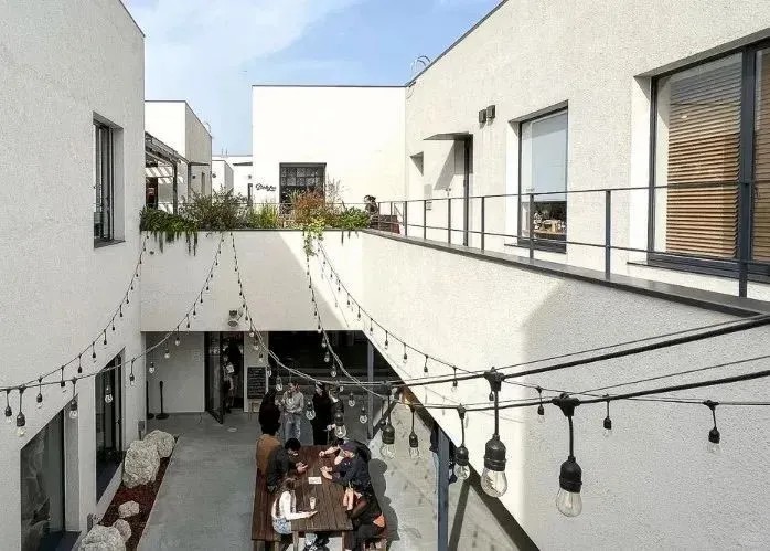 在這些“建筑盒子”內(nèi)部,各類店鋪如黑膠唱片店、復古書店、咖啡店、面包店以及餐廳酒吧等錯落有致,共同圍繞“品質(zhì)生活”這一主題展開,營造出一種令人心曠神怡的輕松氛圍。
